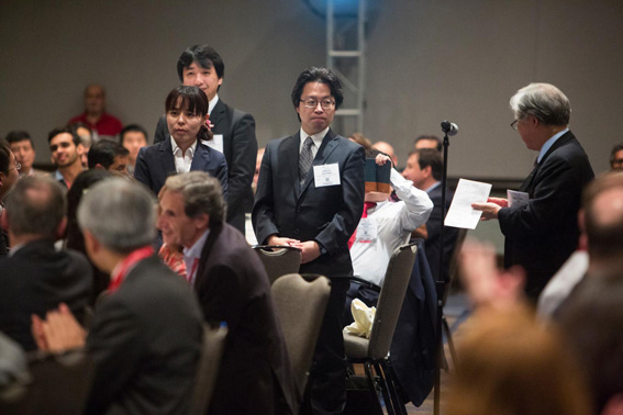 2017年より日本高血圧学会ではAHAと連携して更なる国際化の推進および若手の活性化を目的とし、同学会にて発表する優秀な若手研究者にNew Investigator Awardを贈呈しております(写真は2017年表彰式の様子です)。