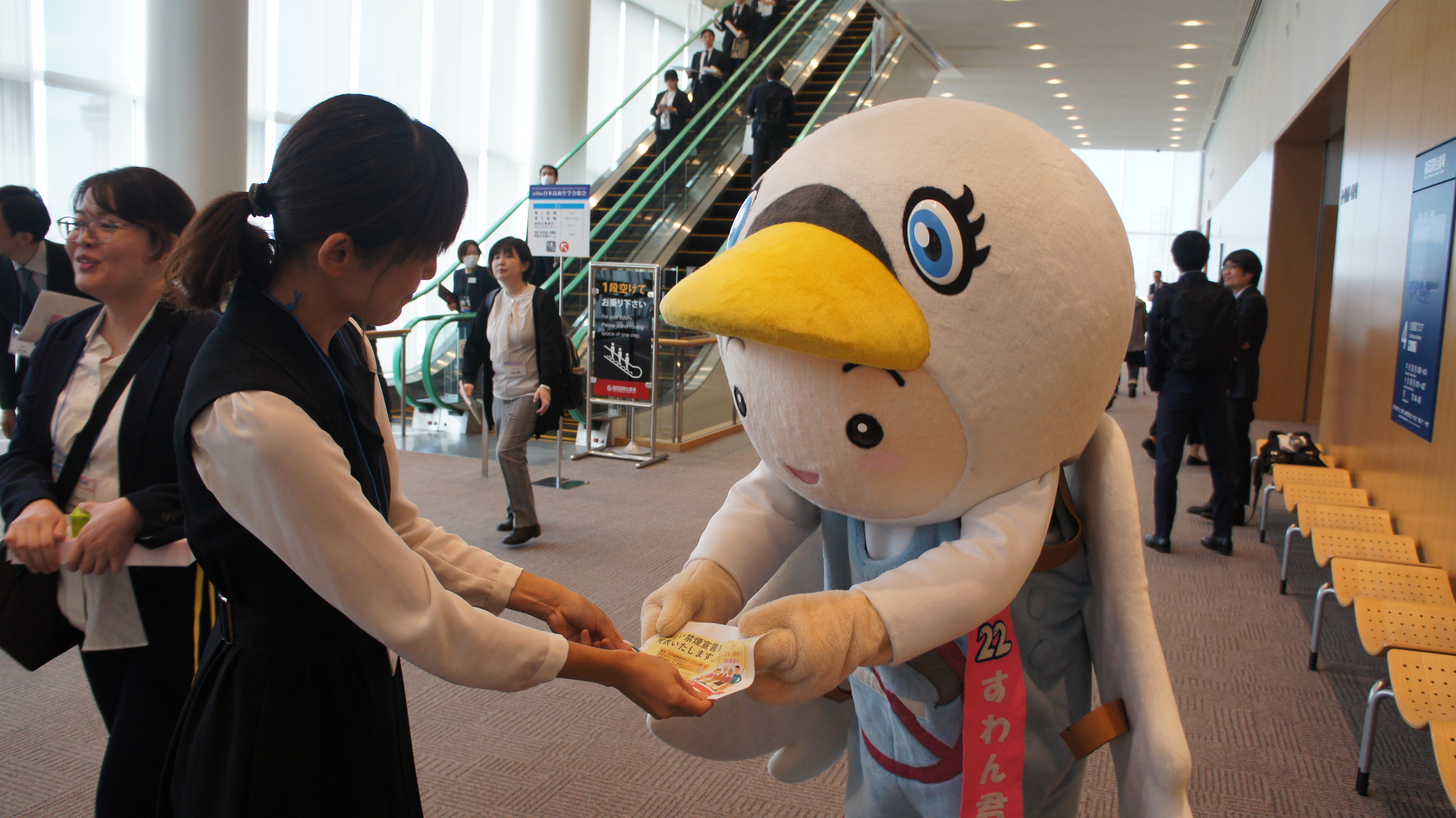 発表した会場には日本循環器学会禁煙推進キャラクター「すわん君」も協力してくれました。