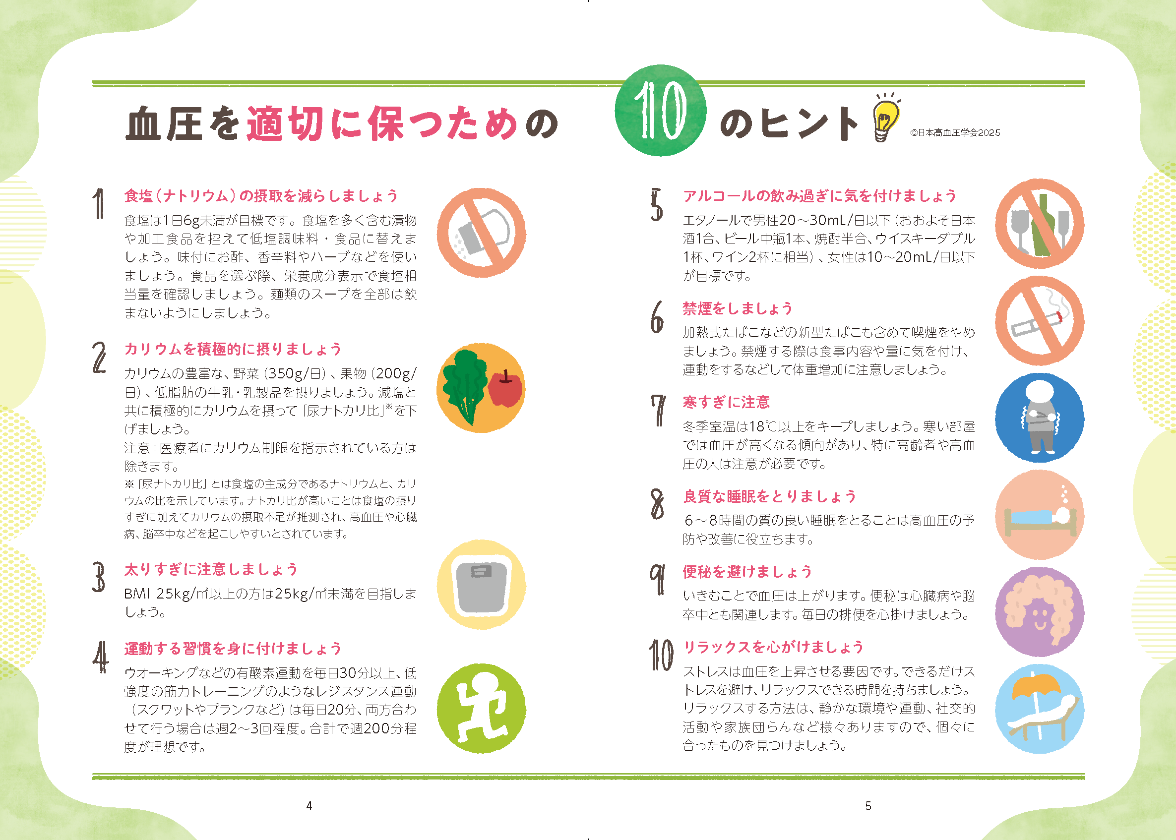 この度、キオスク血圧測定と血圧朝活の大切さを理解していただくための小冊子を作成しました。『血圧を適切に保つための10のヒント』も入った、とても分かりやすい内容になっておりますので是非ご活用ください。