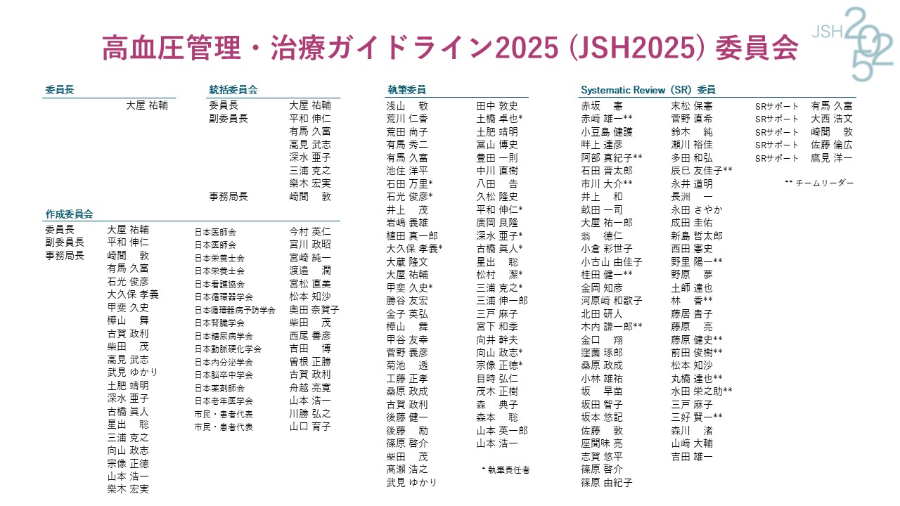日本高血圧学会高血圧管理・治療ガイドライン委員会