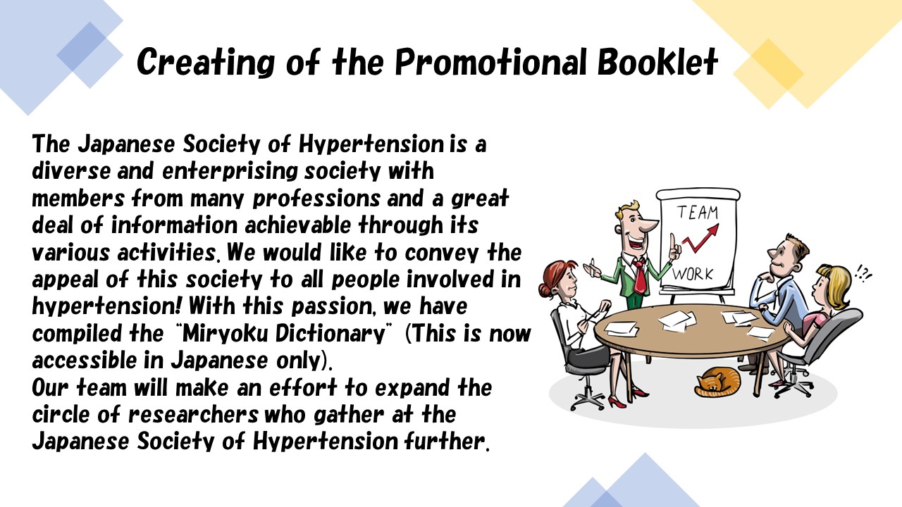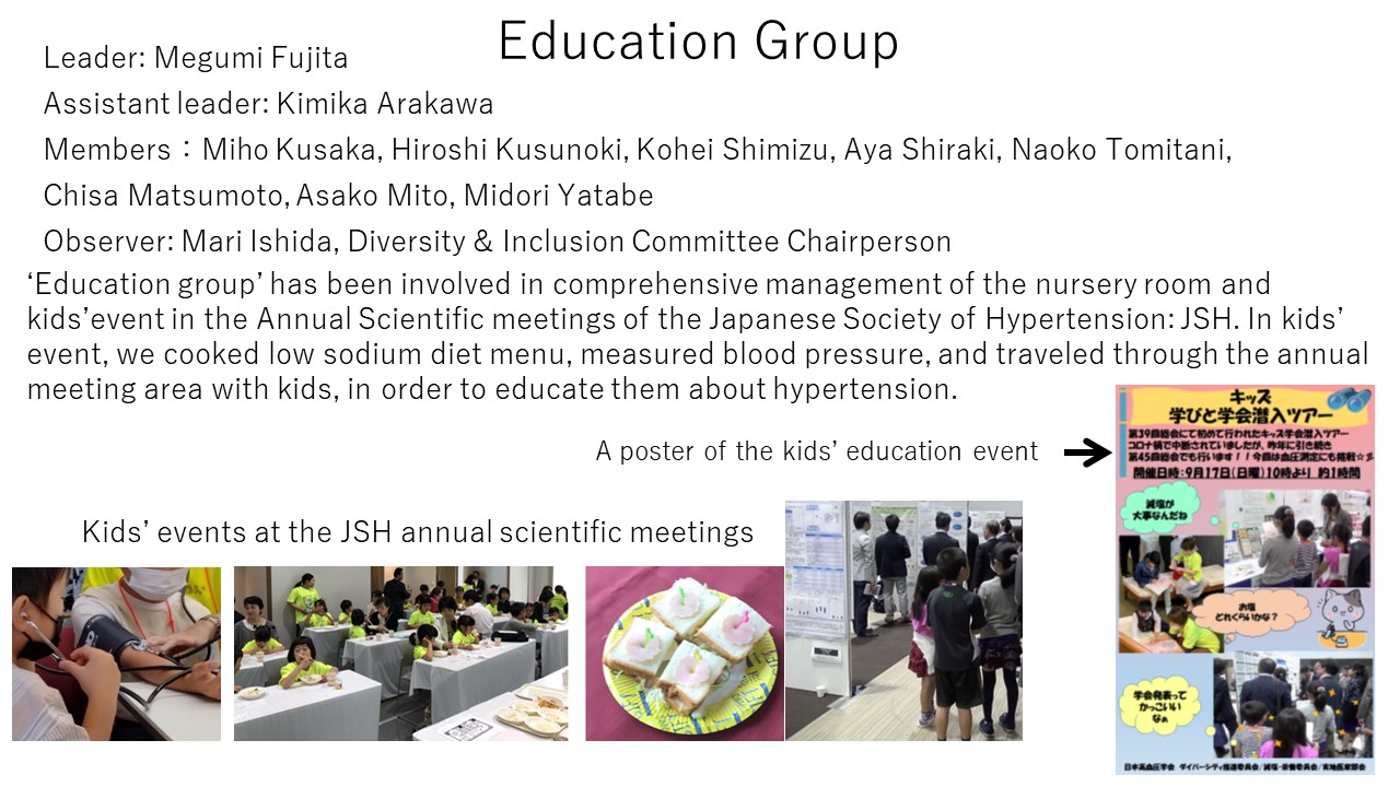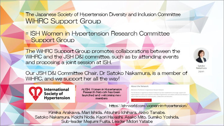 Furthermore, we believe that the activities of the Diversity and Inclusion Committee can contribute to further promoting the prevention of hypertension and the advancement of hypertension care. To achieve this, we will explore various approaches and make proposals.
