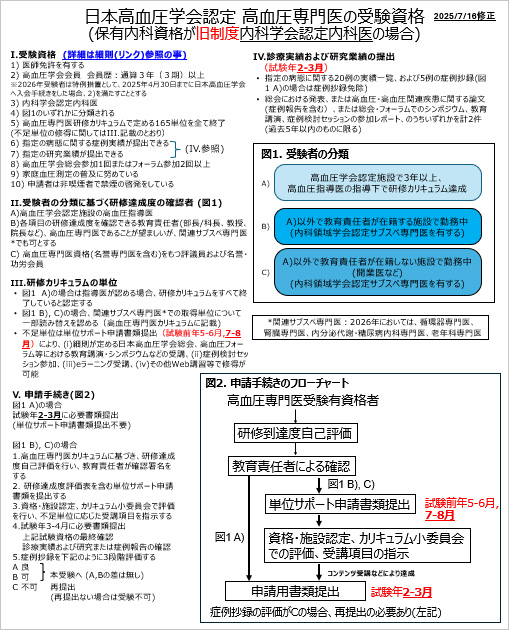 A) | 旧A) | 高血圧学会認定施設で3年以上 高血圧指導医の指導下で研修カリキュラム達成 |